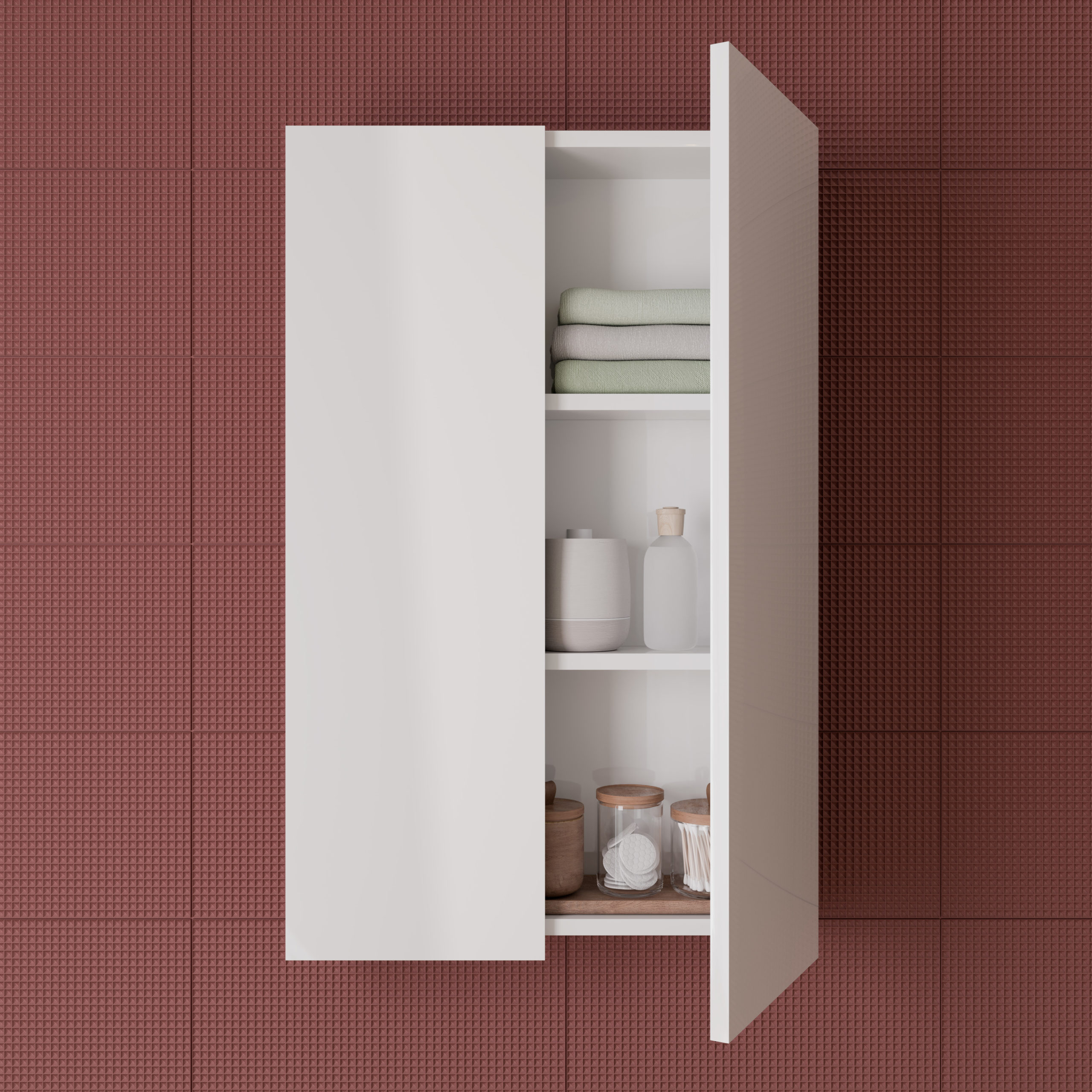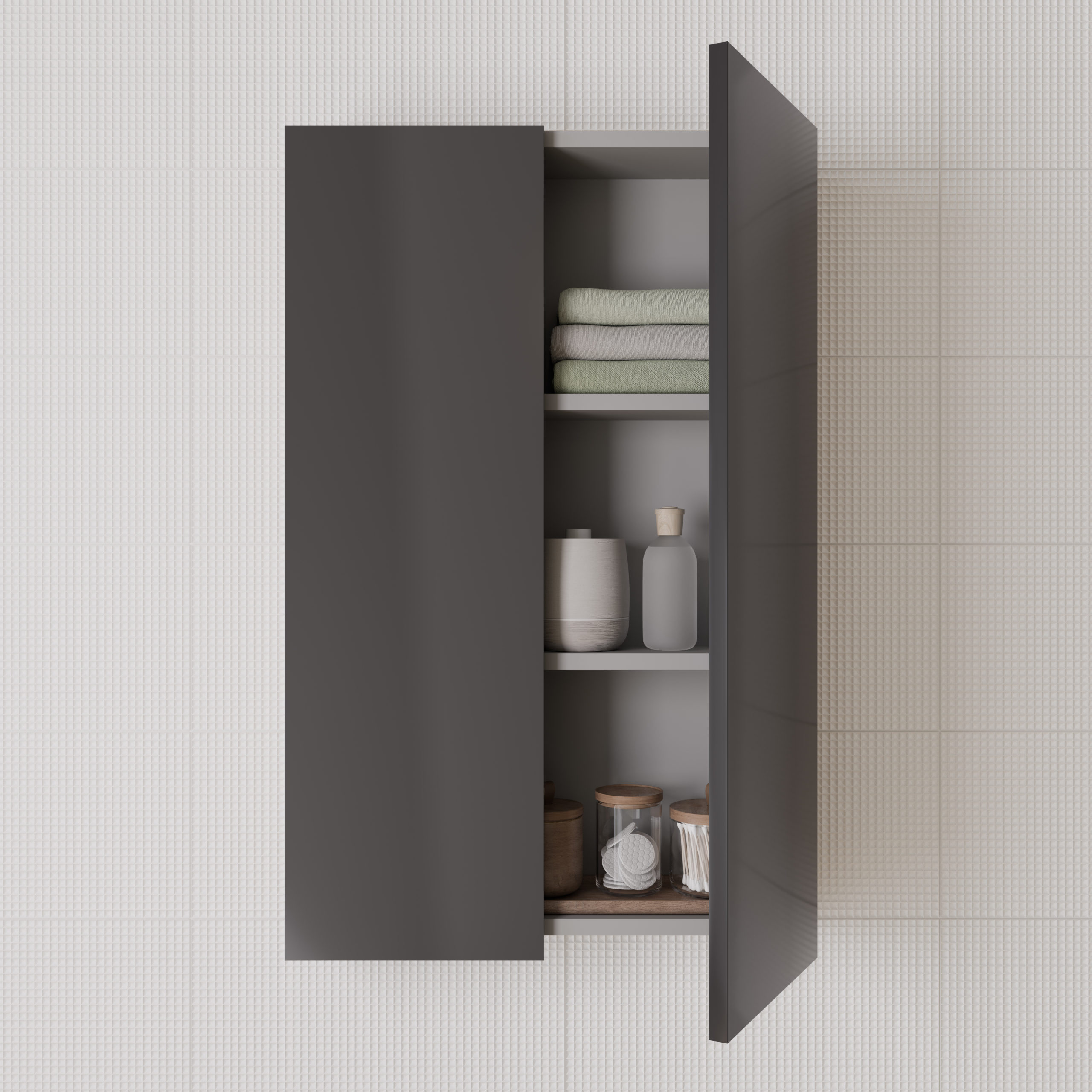 Distribution intérieur: Deux étagères mobiles en bois finition gris. Plancher en finition gris. Pour la finition blanche, les étagères et le sol sont blancs.
